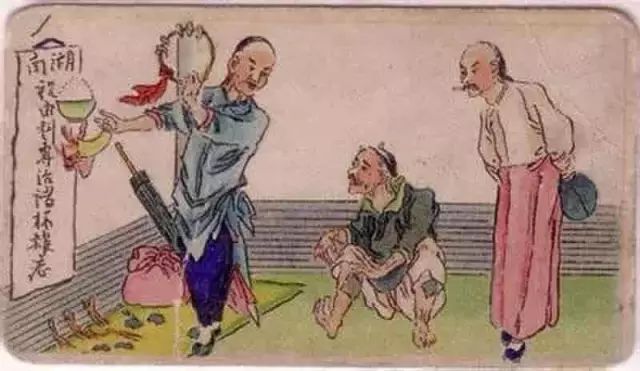 于是我当着众人,疑信参半的掏了一枚铜元给他,他将铜元用一张黄裱纸包起来,放在我的右脚下面,要我踩着。一边用折扇轻敲着我的脑袋,一边轻声念那四句话:“XX瘌痢头,赶快向我求。若要瘌痢好,给我磕个头。”